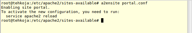 - Selanjutnya ketikan perintah a2ensite portal.conf